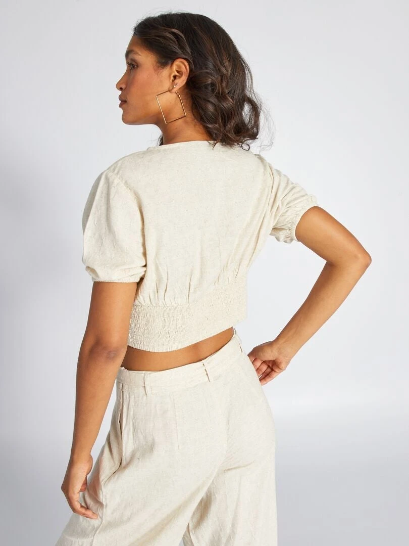 Blusa Crop Top De Lino Con Escote Pronunciado – NATURAL COMO