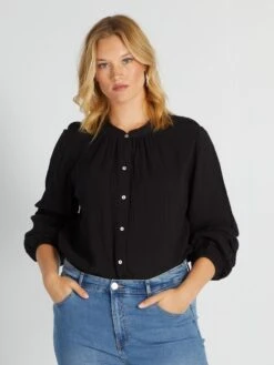 Blusa De Algodón Con Cuello Con Volantes – Negro