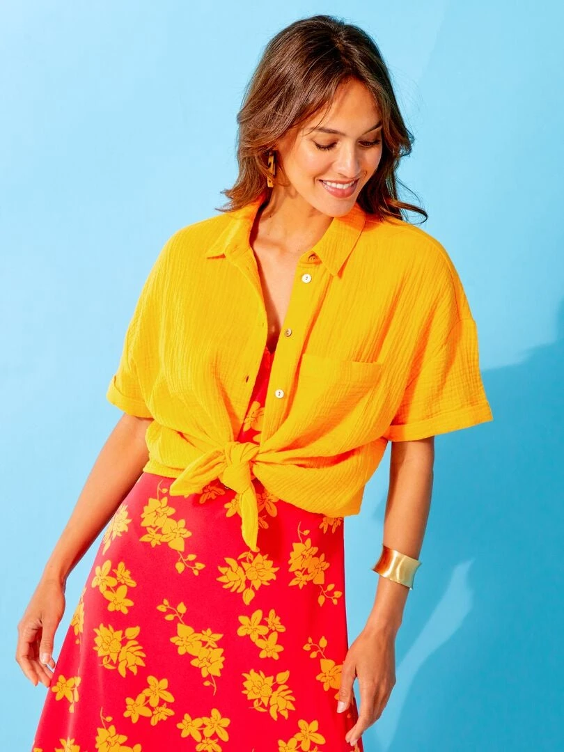 Blusa De Gasa De Algodón – Amarillo Anaranjado