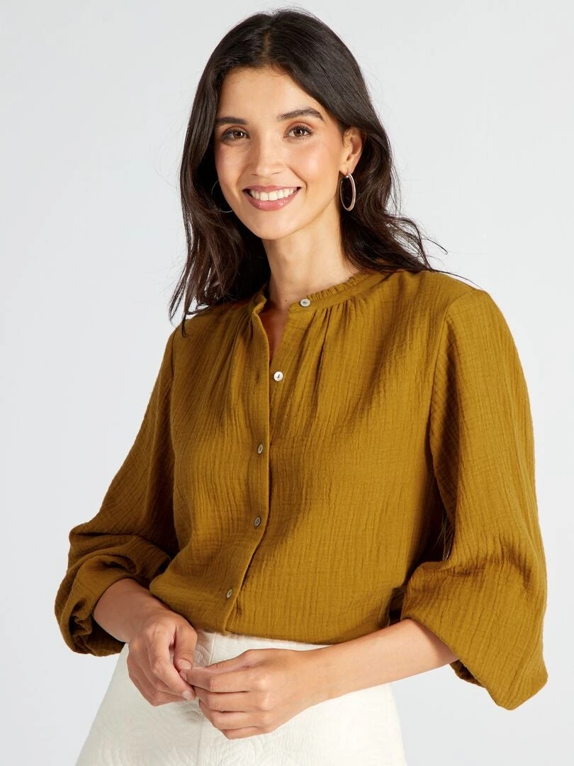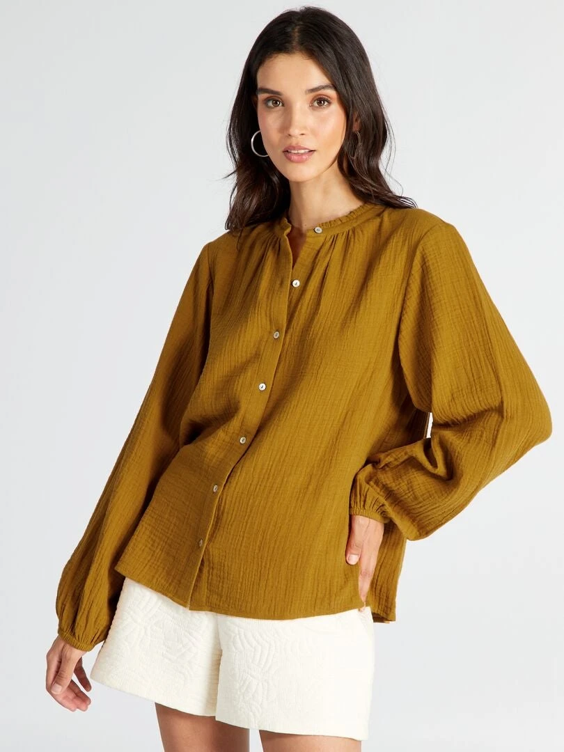Blusa De Gasa De Algodón Con Cuello Alto – Gelel