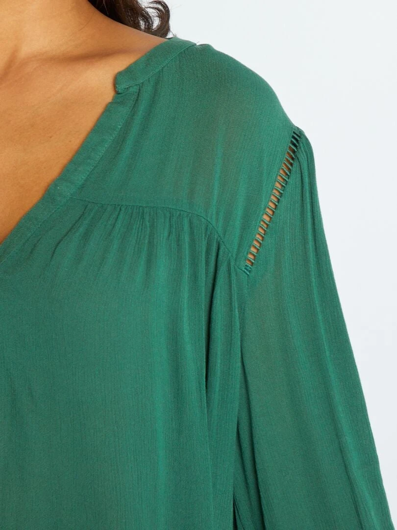 Blusa De Punto De Crepé Con Ribetes Calados – Verde
