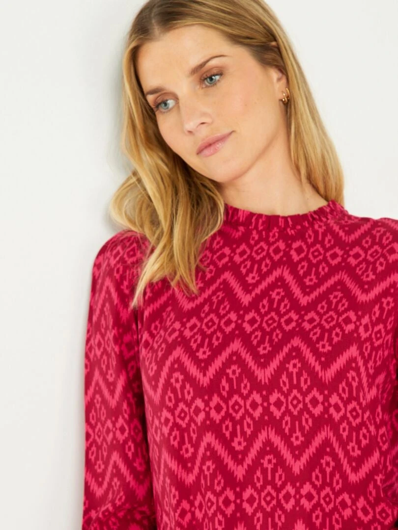 Blusa Estampada De Cuello Alto Con Volante – ROSA