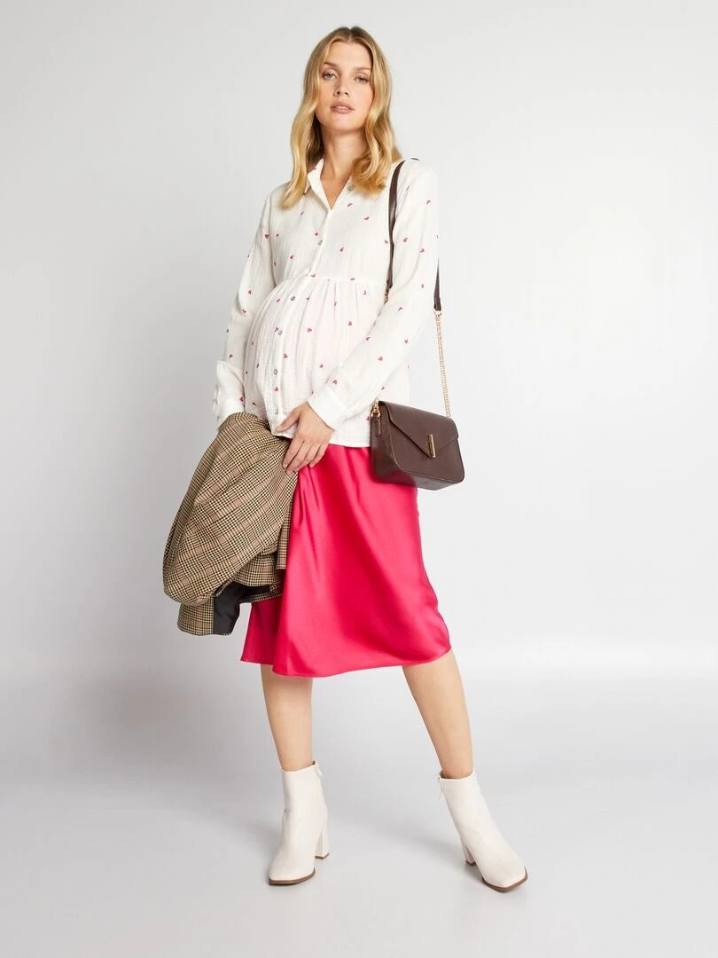 Blusa Premamá De Gasa De Algodón Con Estampado De Corazón – ROSA