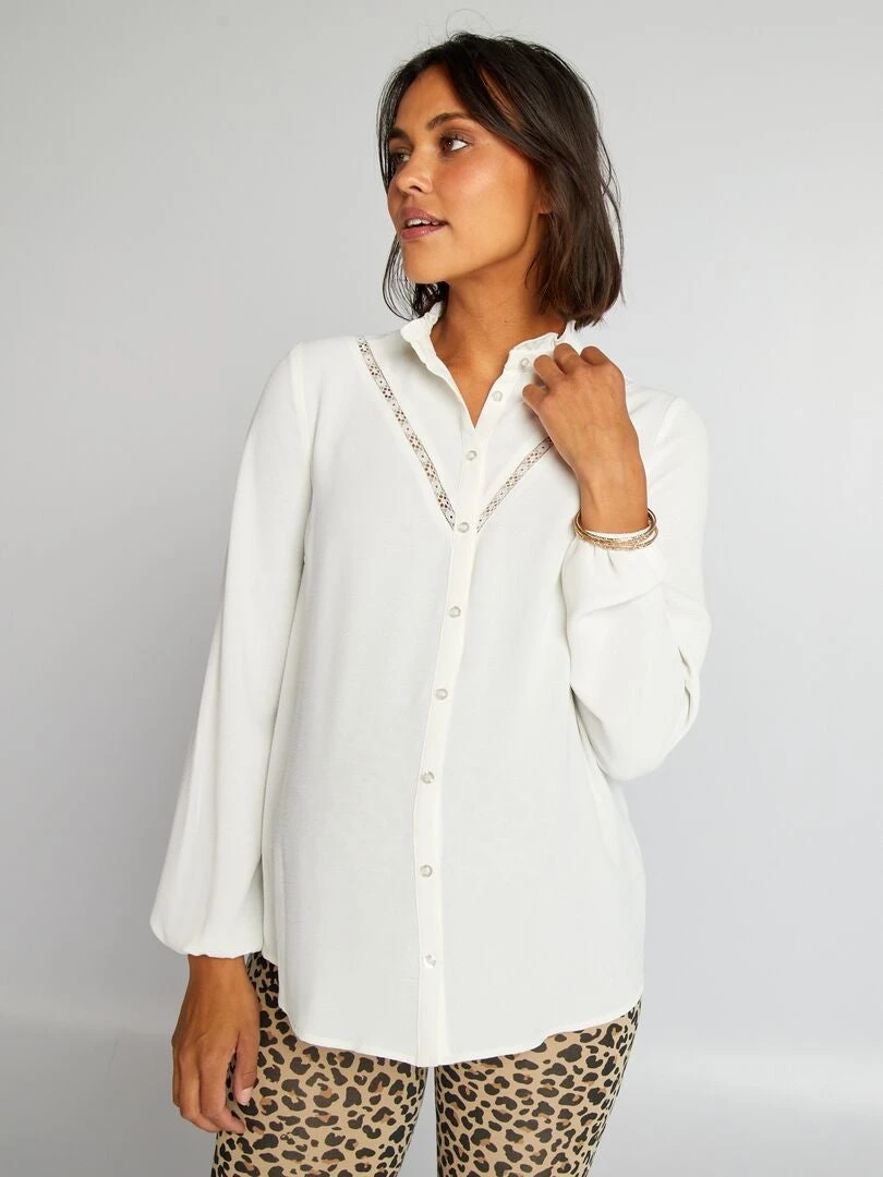 Luce un embarazo elegante con esta blusa calada tan vaporosa.