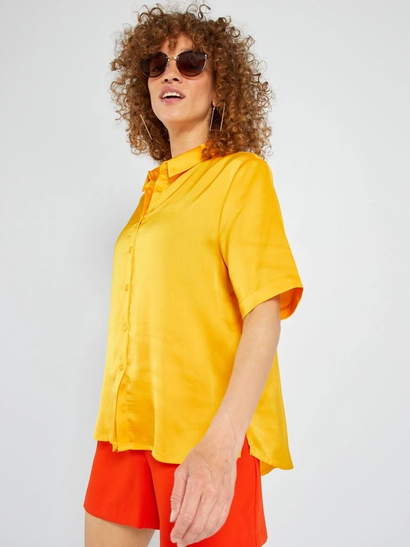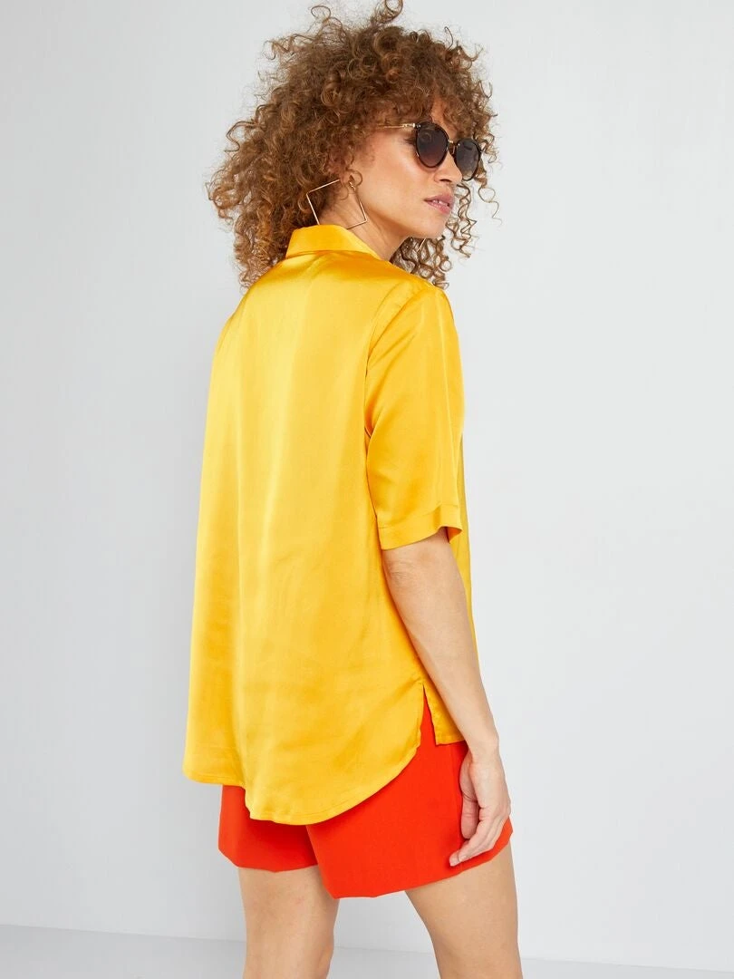 Blusa Satinada De Manga Corta – AMARILLO