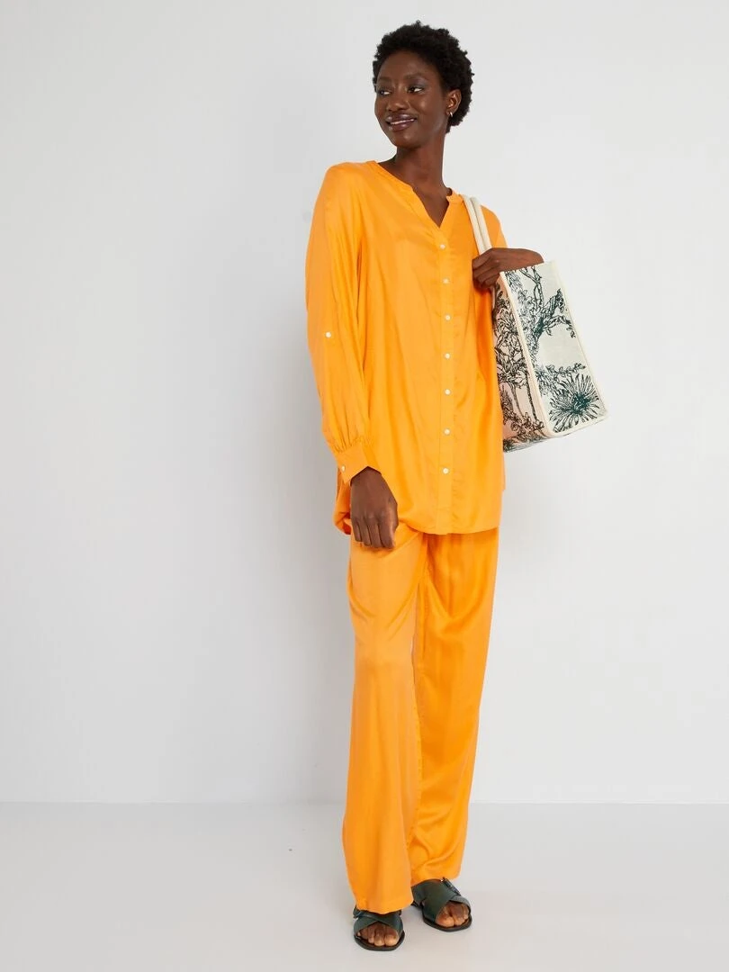 Blusa Vaporosa Con Cuello Mao – NARANJA
