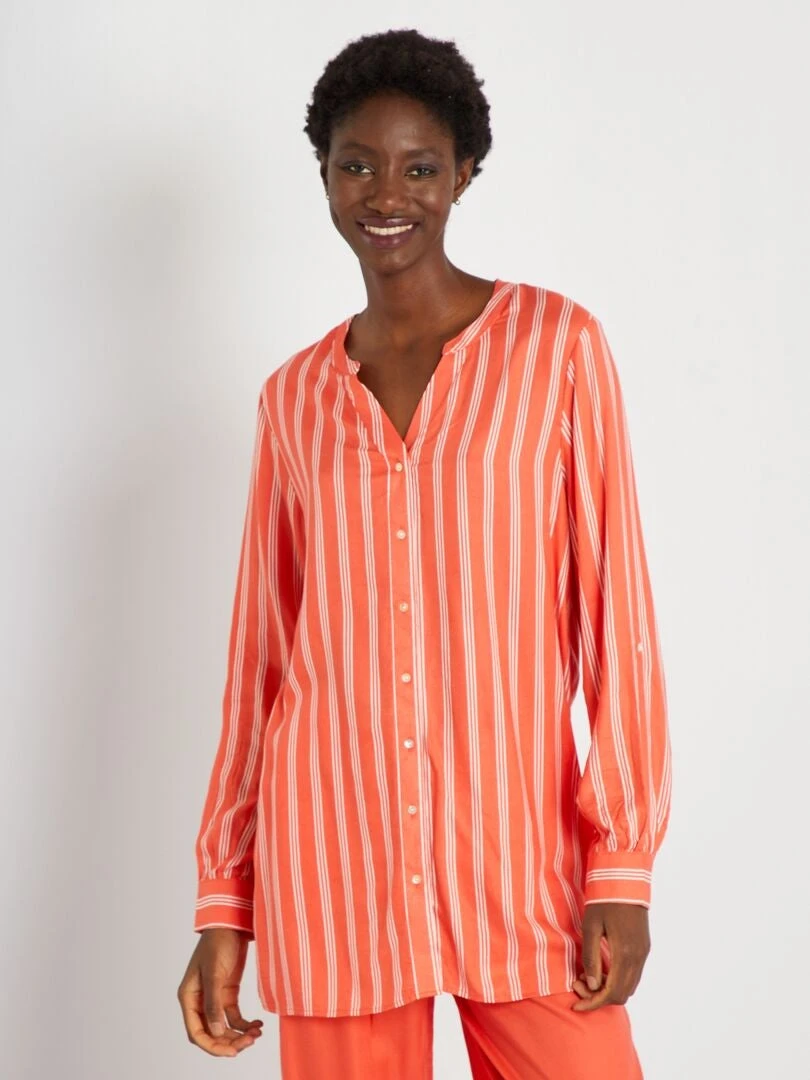 Blusa Vaporosa Con Cuello Mao – ROJO