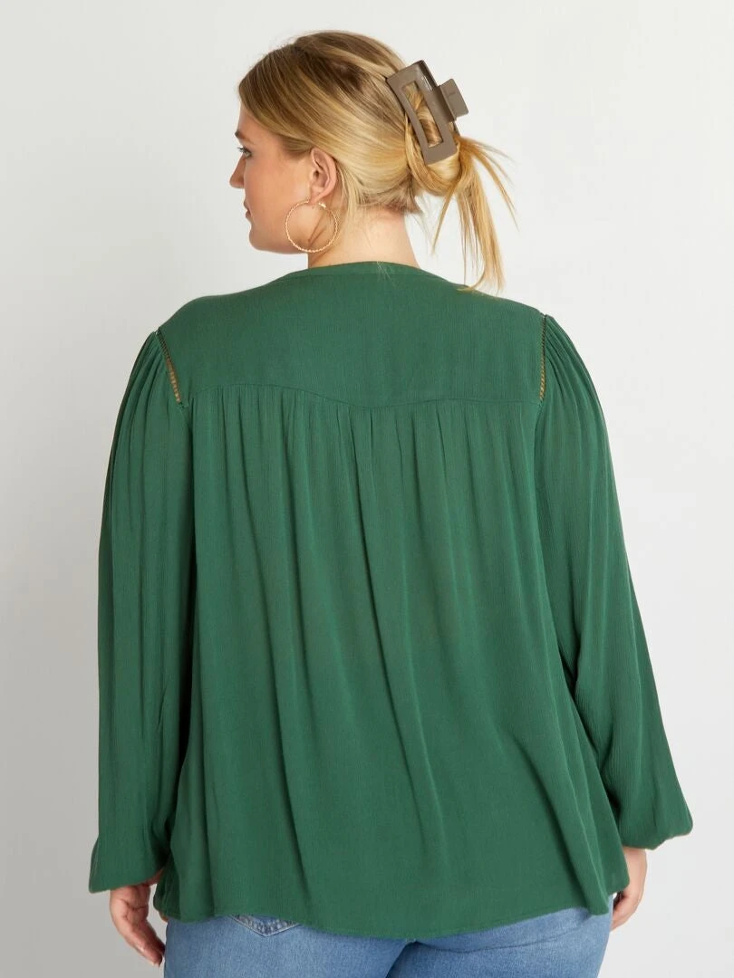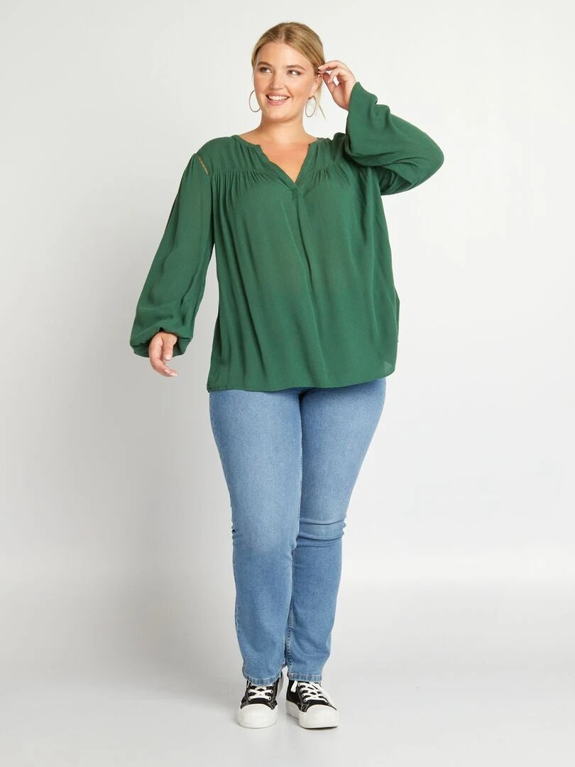 Blusa Vaporosa Con Escote De Pico – Verde