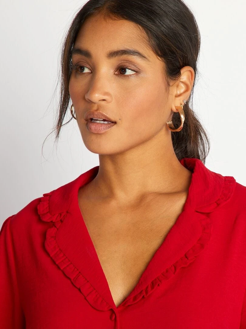 Blusa Vaporosa De Manga Larga – Rojo