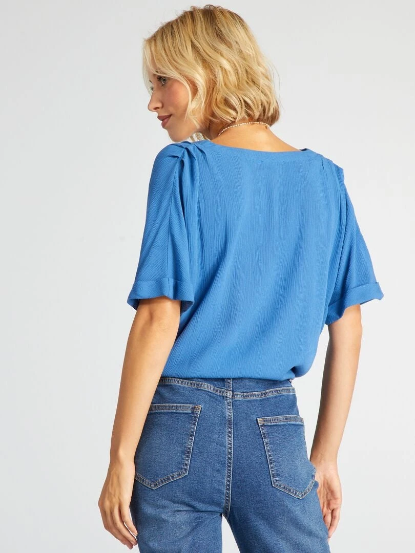 Blusa Vaporosa De Punto De Crepé – AZUL