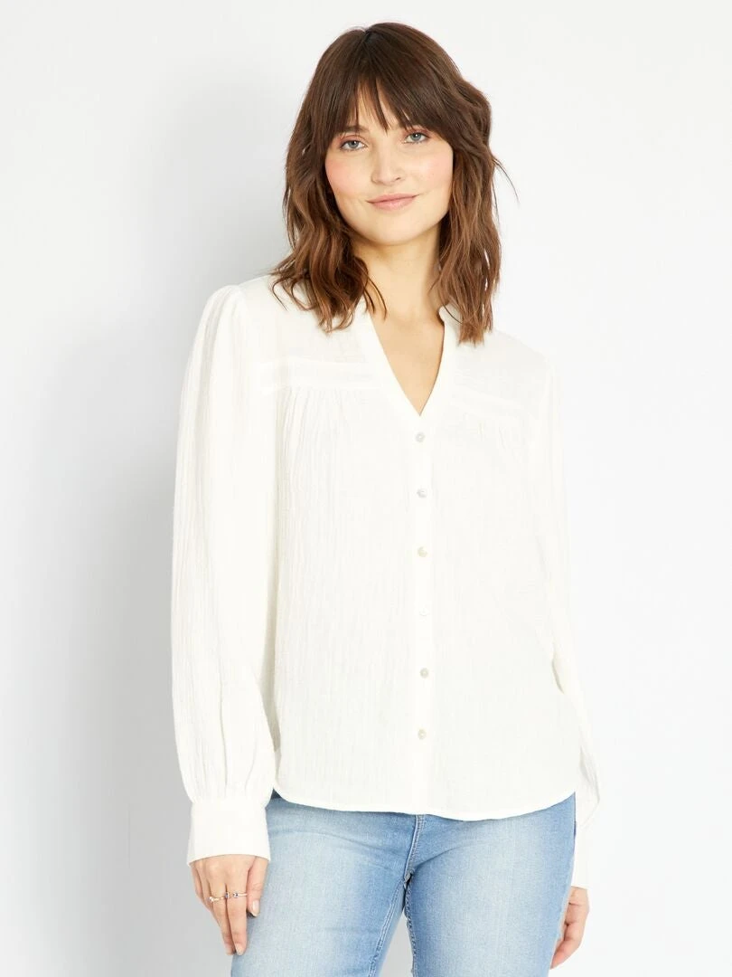 Apuesta por esta blusa de gasa de algodón para ganar ligereza y confort.