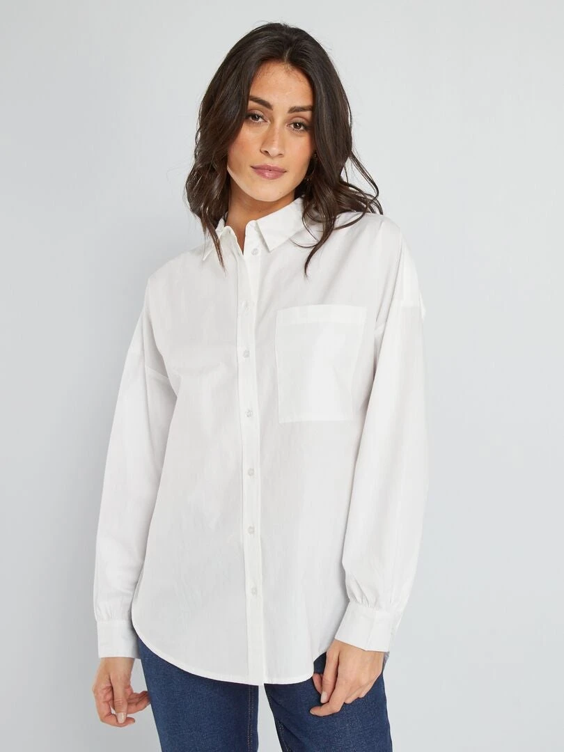 Camisa Lisa De Popelina – Blanco