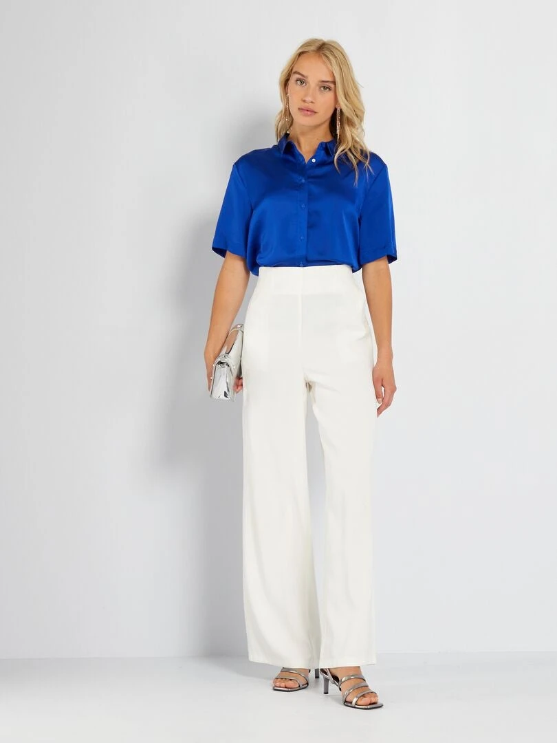 ¡Una preciosa camisa lisa y satinada que podrás ponerte fácilmente con un vaquero!