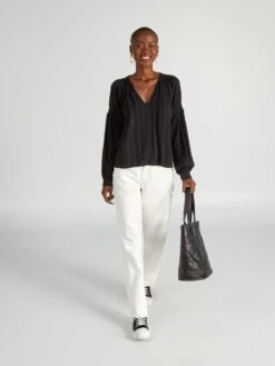 Blusa Crop Top De Lino Con Escote Pronunciado – NATURAL COMO