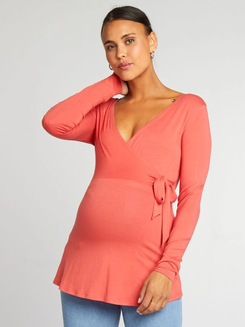 Una camiseta con cuello cruzado y drapeado bajo el pecho que ofrece un confort total.