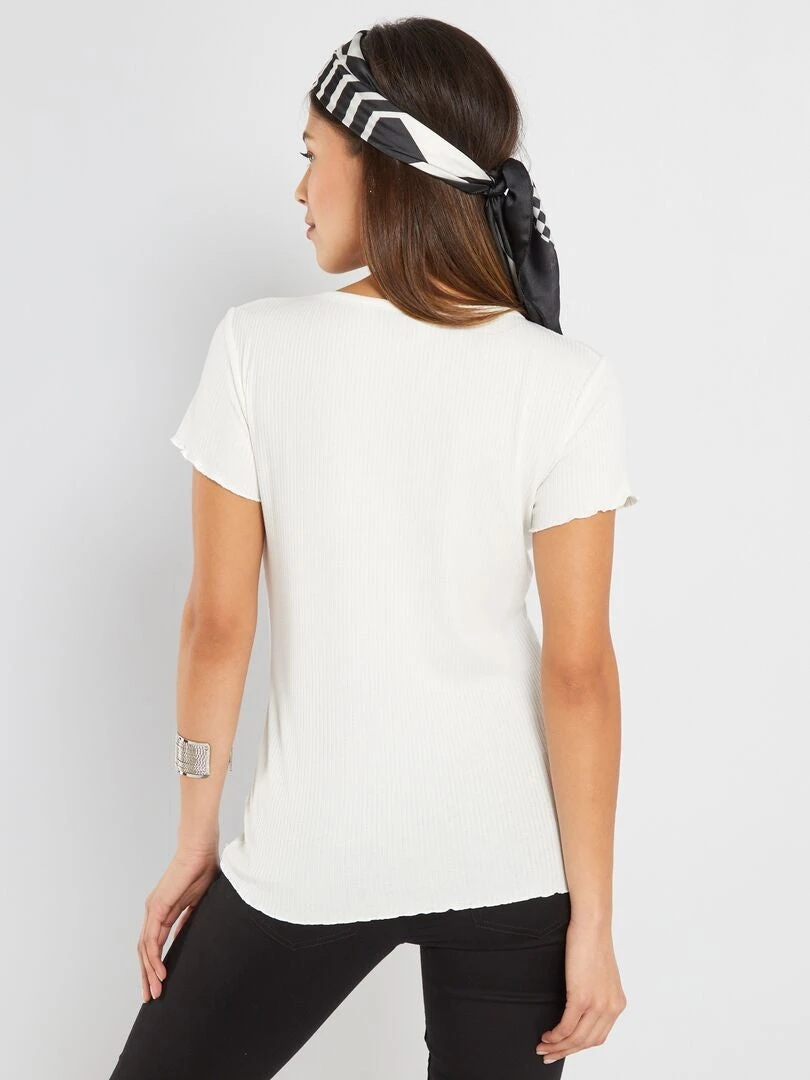 Una camiseta de ganchillo con efecto ondulado y flores.