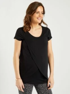 Camiseta De Lactancia Con Cuello Redondo – Negro