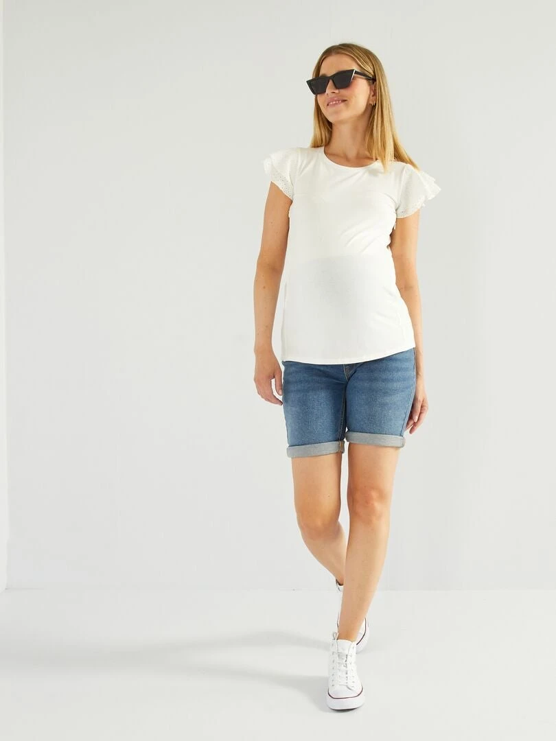 Camiseta De Lactancia Con Volantes En Las Mangas – Blanco