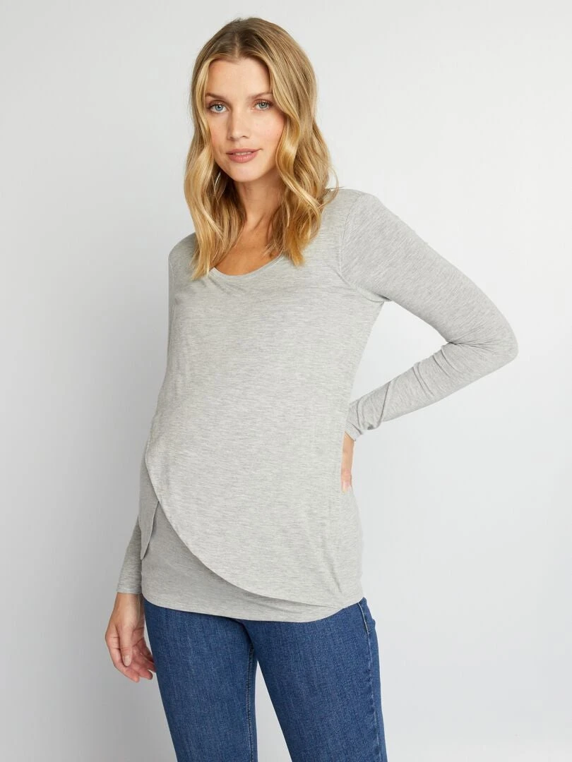 Camiseta De Lactancia Cruzada Por Delante – GRIS