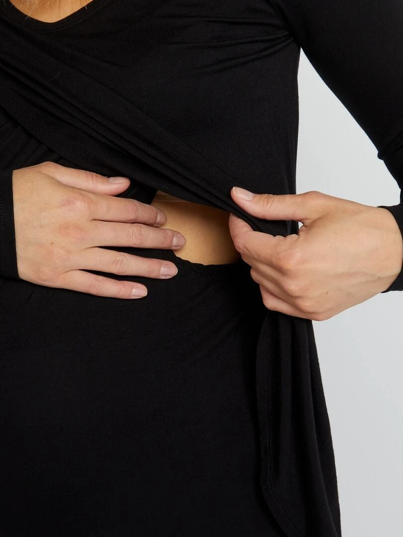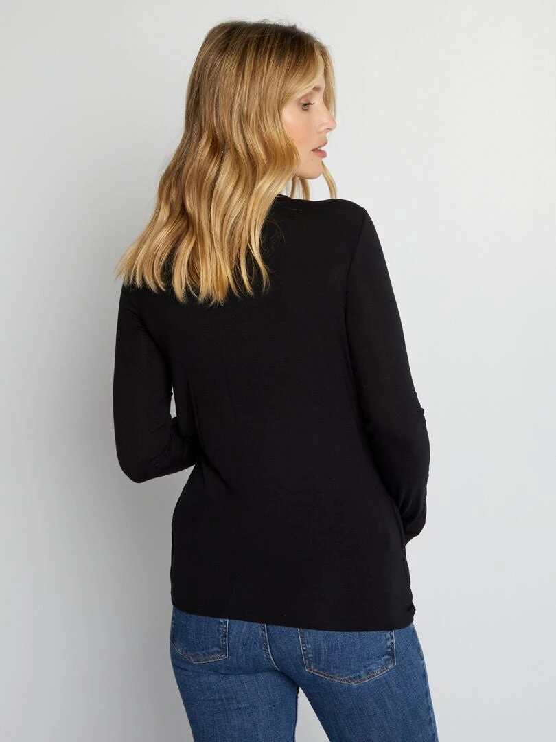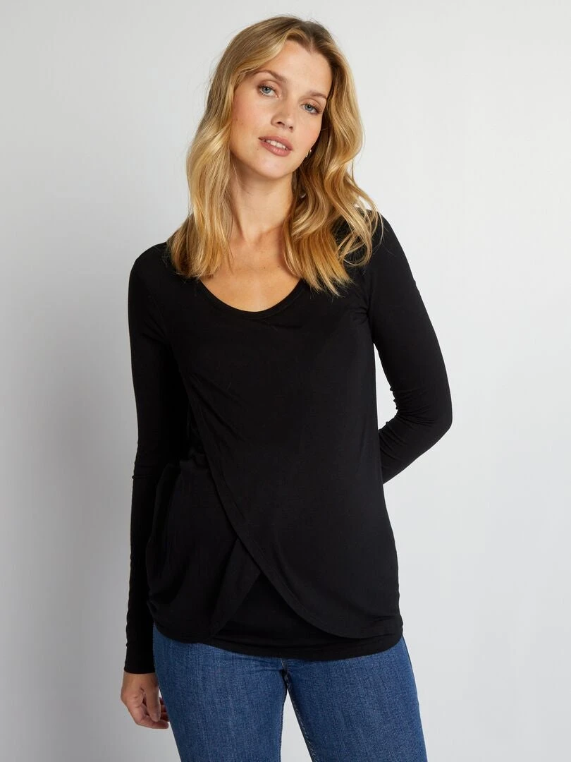 Camiseta De Lactancia Cruzada Por Delante – Negro
