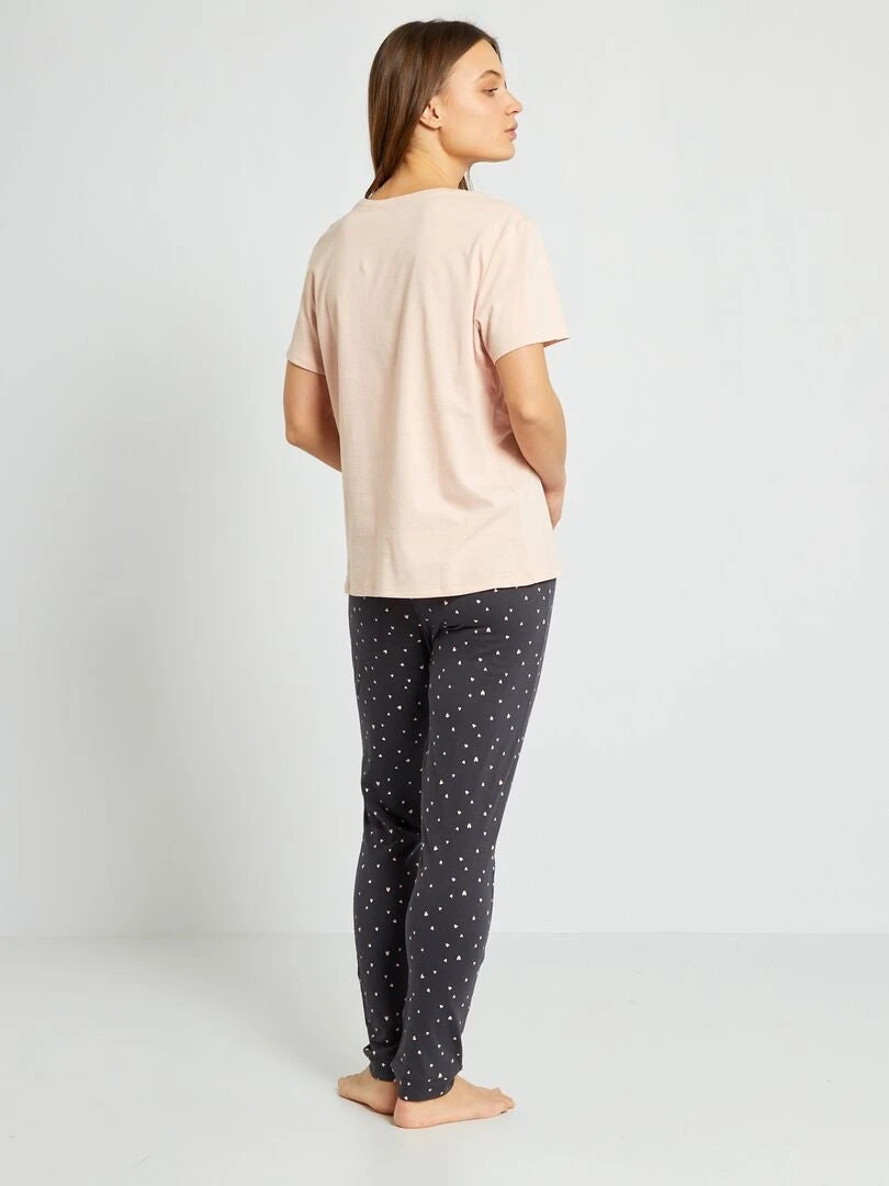 Un pijama con camiseta estampada y pantalón con motivo.