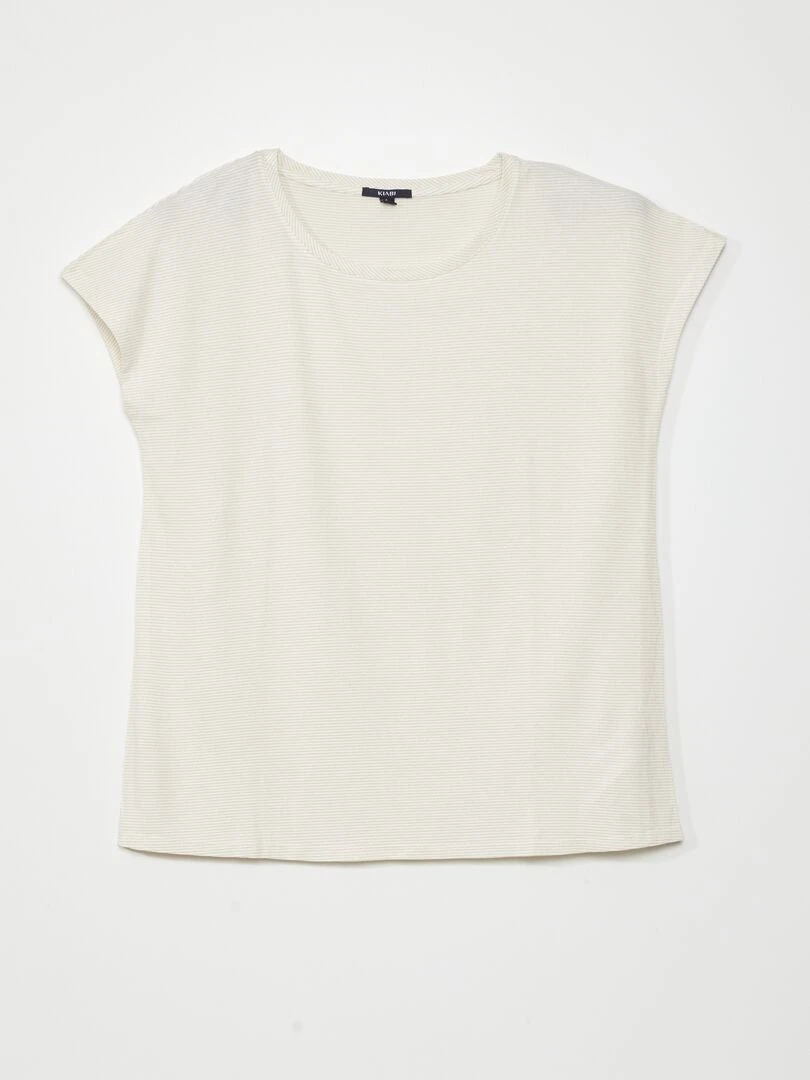 Camiseta Premamá Manga Corta De Rayas Finas – Blanco