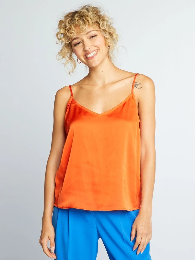 Una bonita camiseta satinada con tirantes finos ajustables.