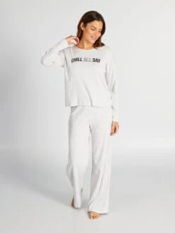 Conjunto De Pijama Con Camiseta + Pantalón – 2 Piezas – GRIS_