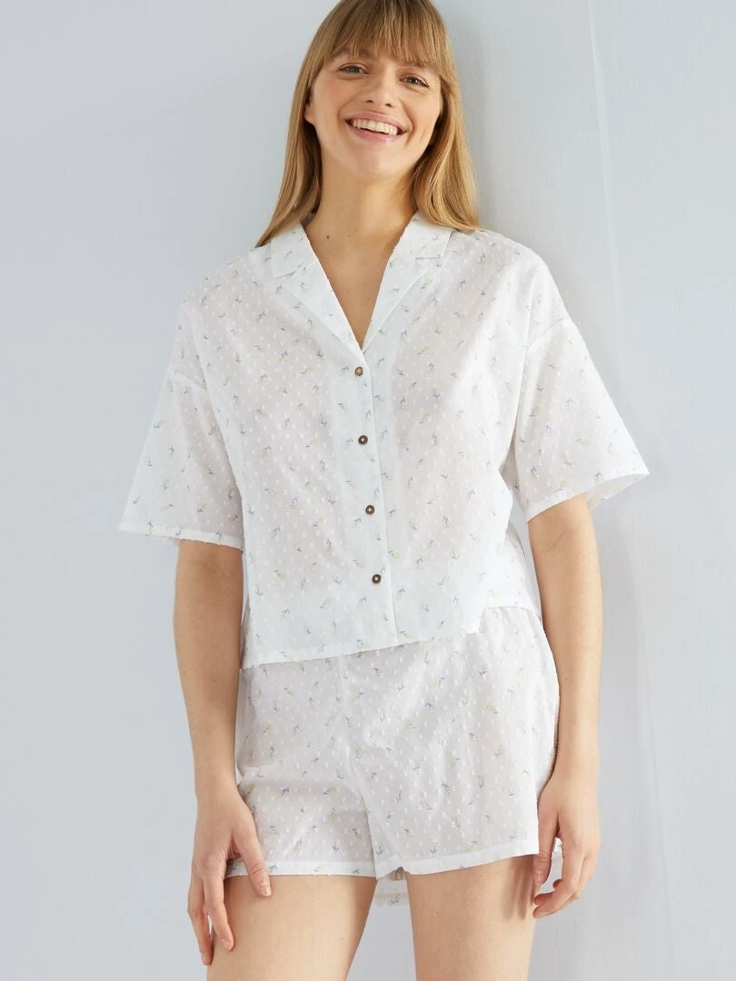 Conjunto De Pijama Corto De Plumeti – 2 Piezas – BLANCO