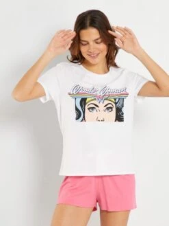 Conjunto De Pijama ‘Wonder Woman’ – 2 Piezas – Blanco/rosa