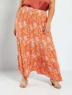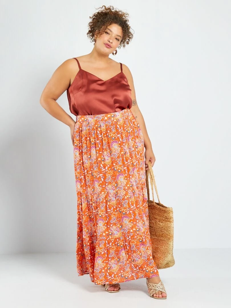 Falda Larga Estampada Con Capas – NARANJA
