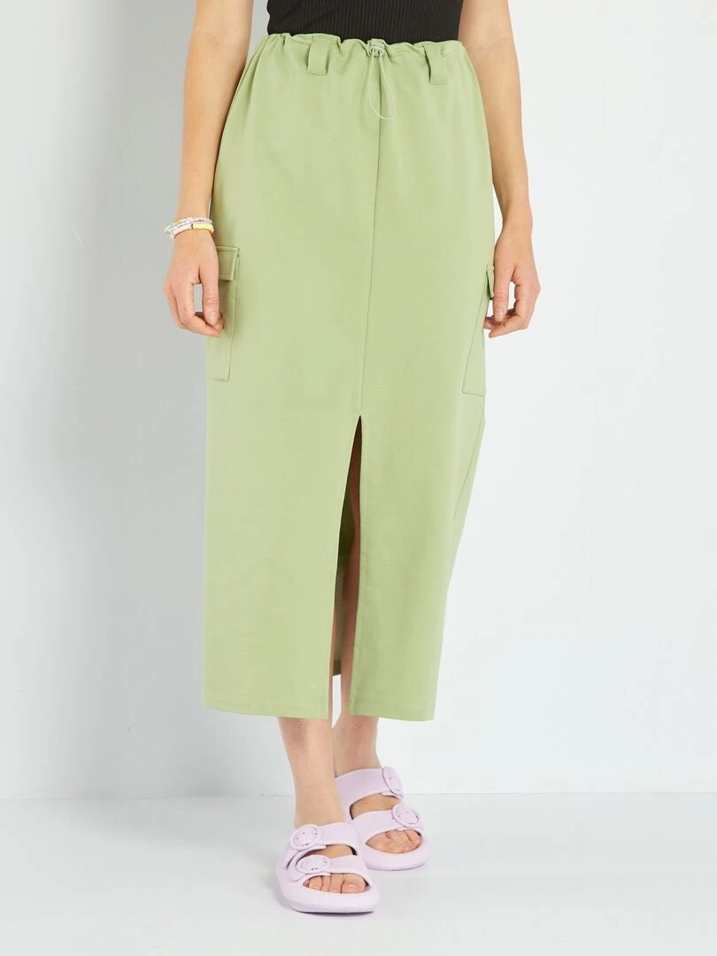 Falda Midi Estilo Paracaídas – CAQUI CLARO