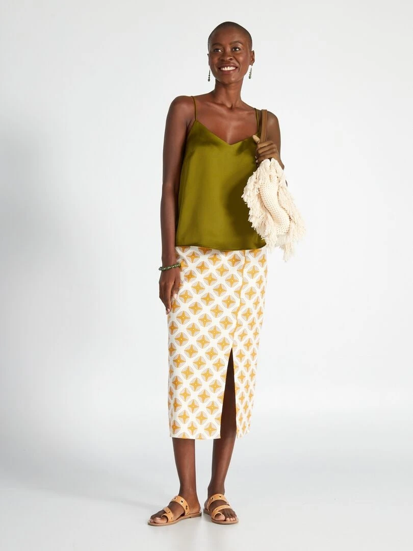 Combina esta falda para mujer con una parte de arriba del mismo estilo para conseguir un outfit que nunca pasa de moda, de la cabeza a los pies.