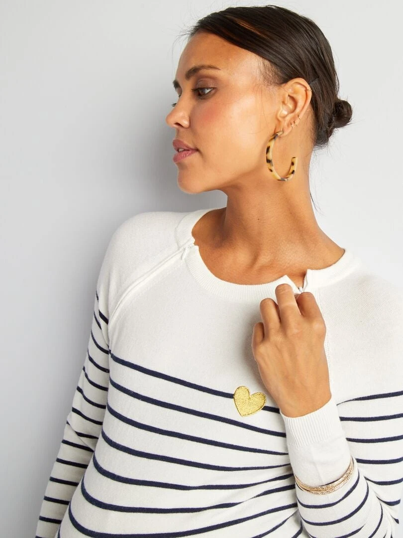 Este bonito jersey de rayas cuenta con cremalleras en los laterales para facilitar la lactancia en el día a día.