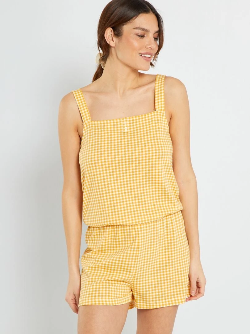 Mono De Pijama Con Estampado De ‘vichy’ – Amarillo