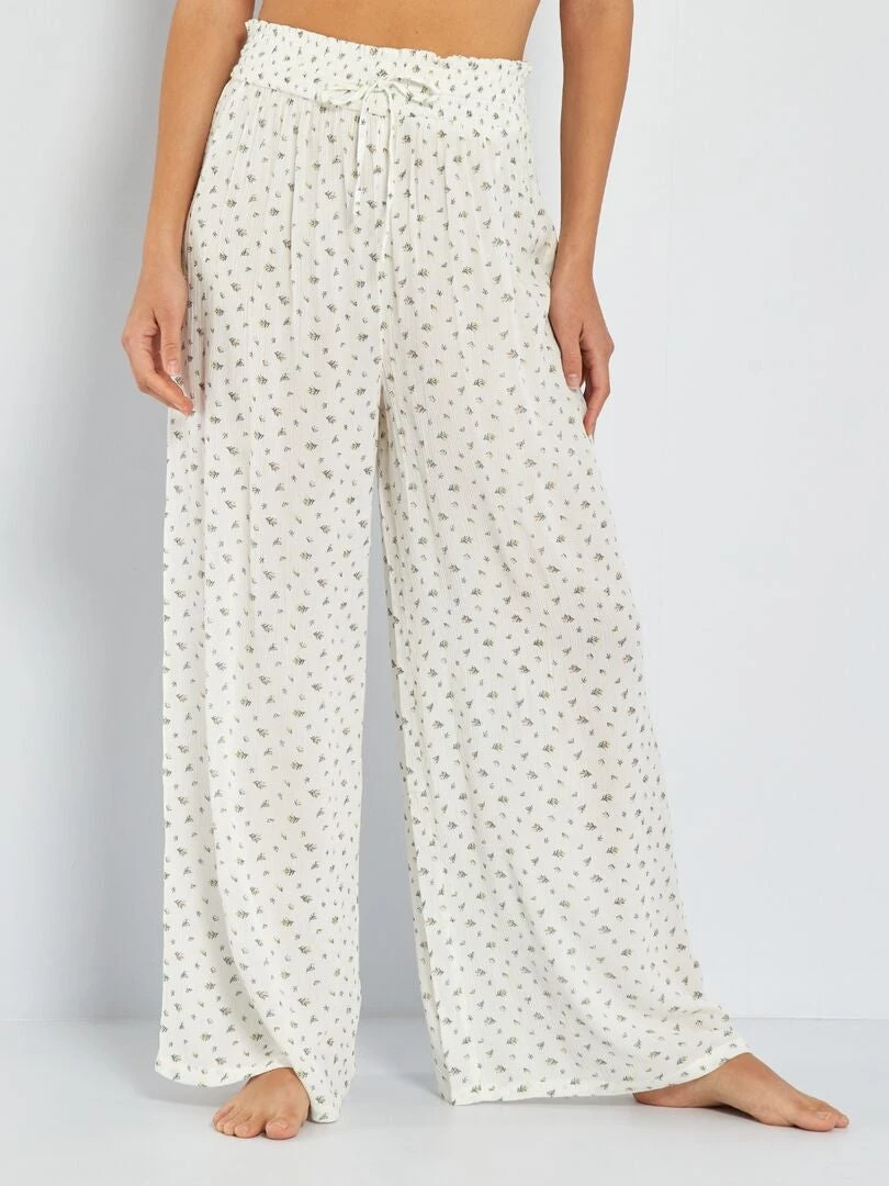 Pantalón Ancho De Punto De Crepé Estampado – BLANCO