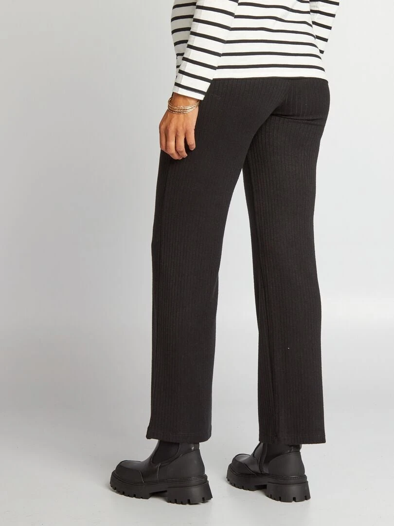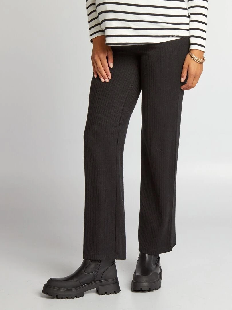 Pantalón Ancho Premamá De Punto De Canalé – Negro