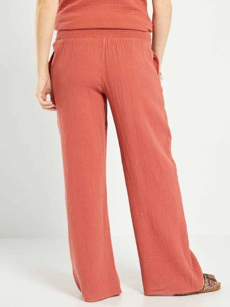 ¡Un pantalón ancho de gasa de algodón fácil de llevar durante el embarazo!