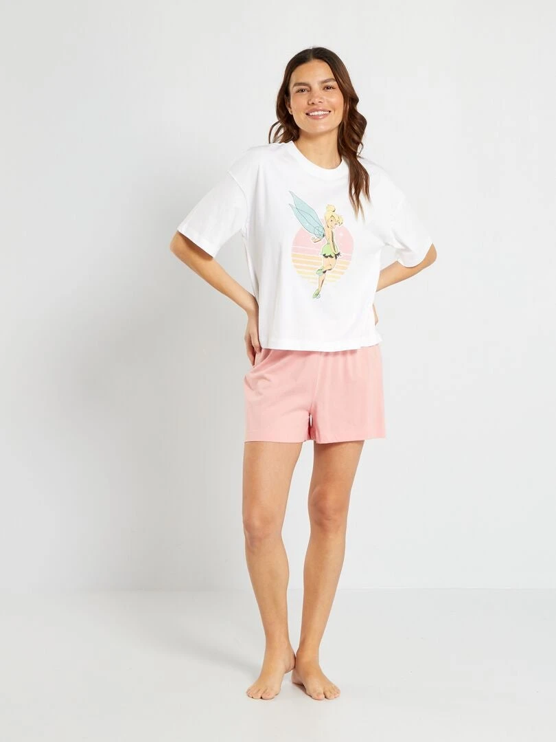 Pijama Corto Camiseta + Short ‘Campanilla’ ‘Disney’ – 2 Piezas – BLANCO