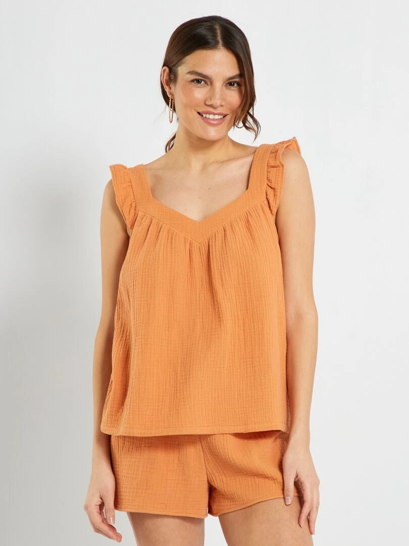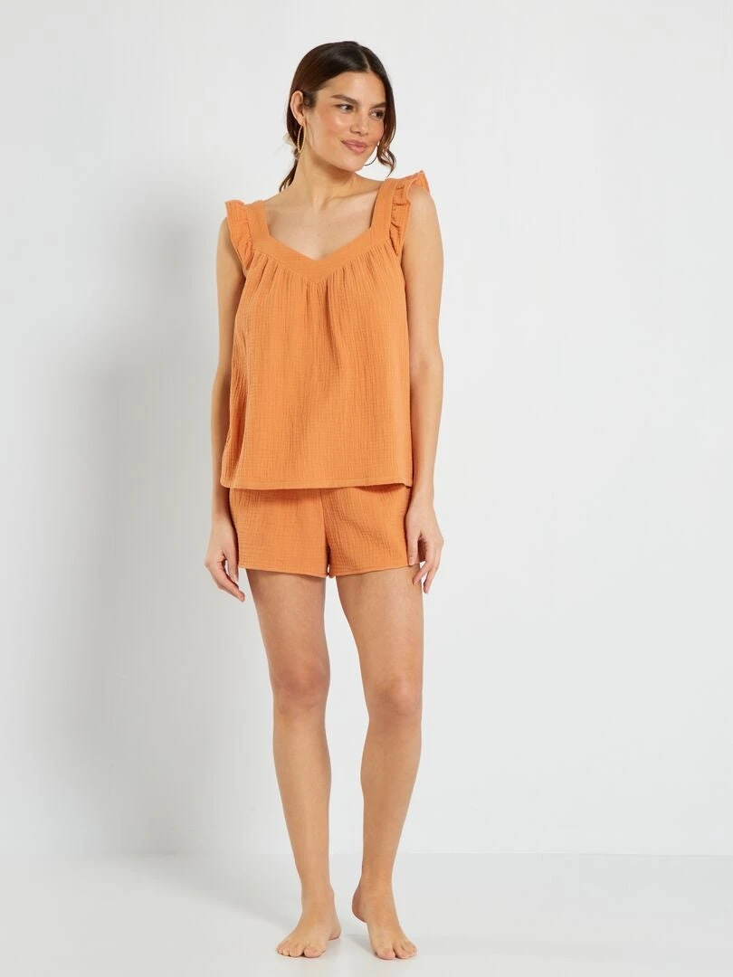 Pijama Corto De Gasa De Algodón – 2 Piezas – NARANJA