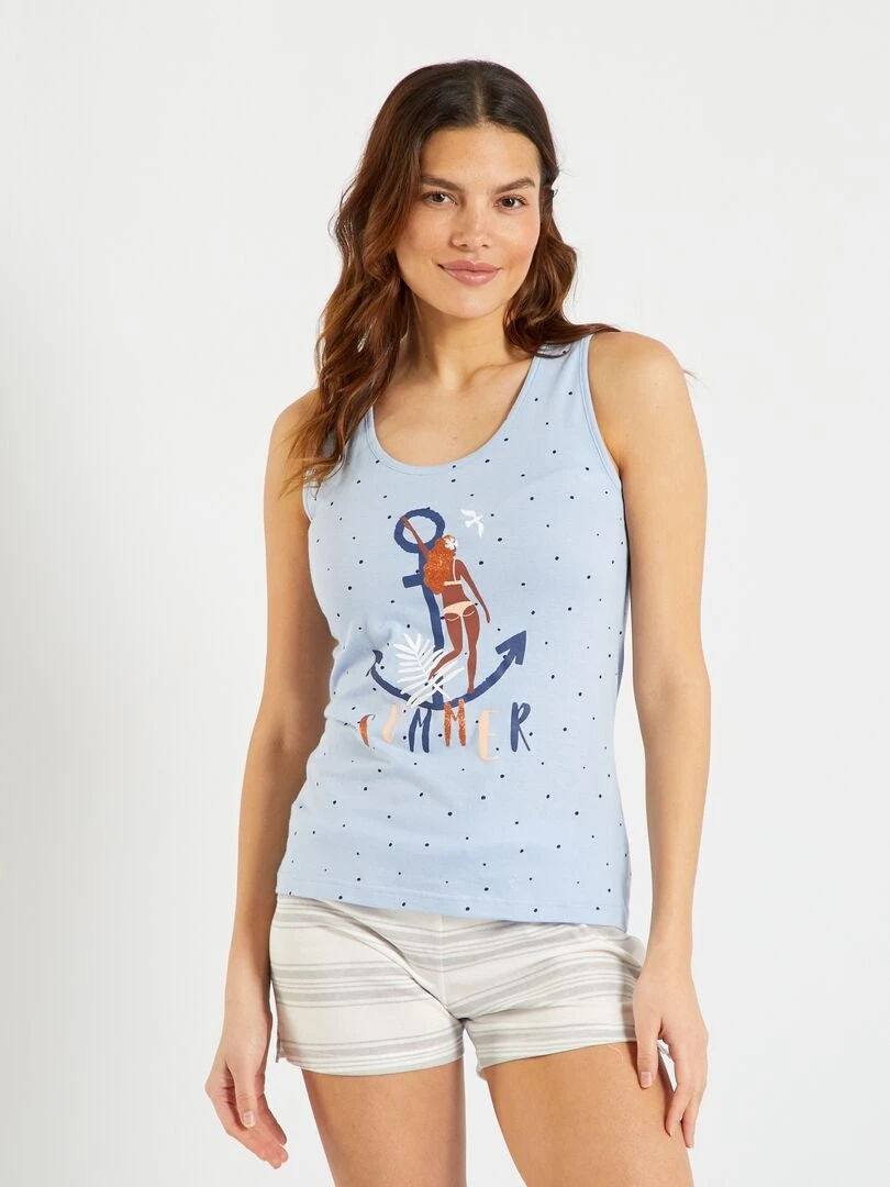 Pijama Corto De Punto – 2 Piezas – Gris/azul