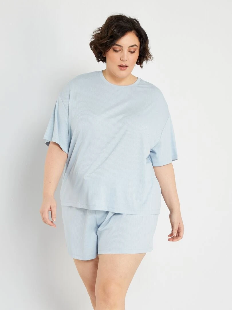 Pijama Corto De Punto De Canalé – 2 Piezas – AZUL