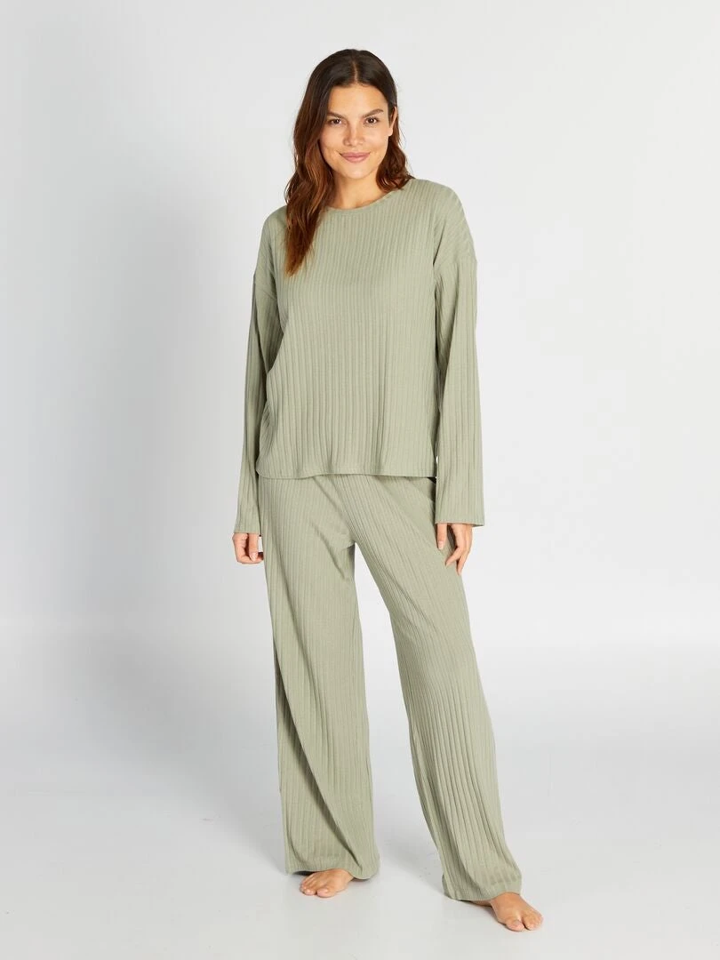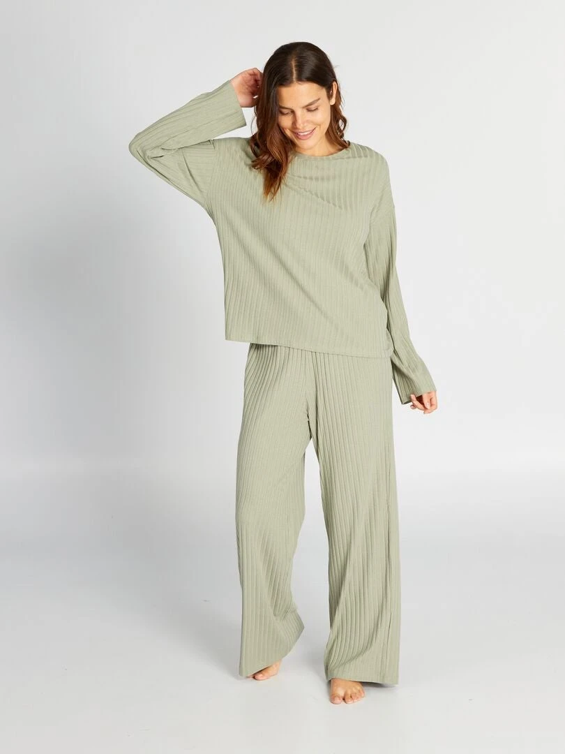 Pijama De Canalé Con Camiseta + Pantalón – 2 Piezas – SOMBRA VERDE