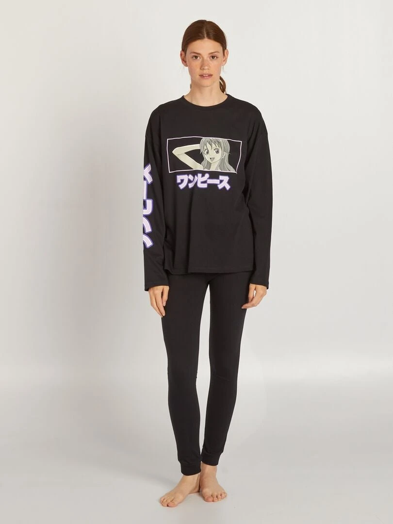 Pijama Largo – Estampado ‘One Piece’ – 2 Piezas – Negro