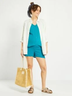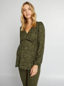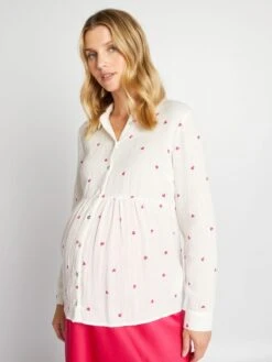 Blusa Premamá De Gasa De Algodón Con Estampado De Corazón – ROSA