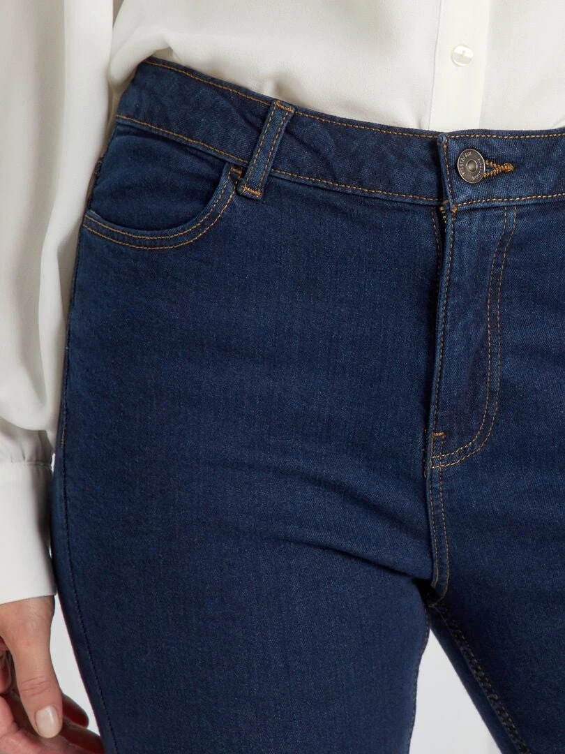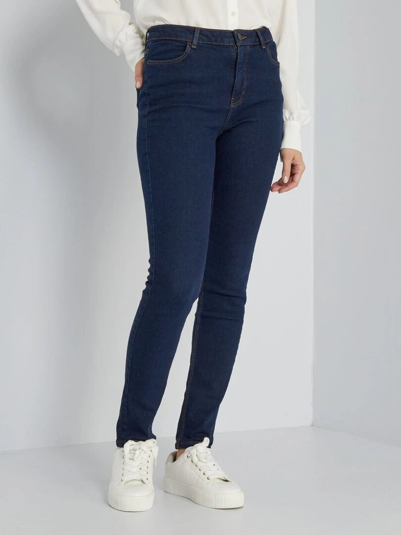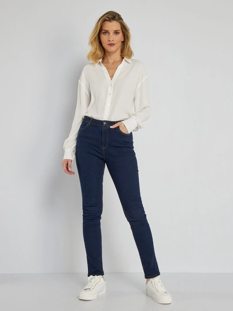 Un vaquero slim a la última gracias a su tono y su talle alto.