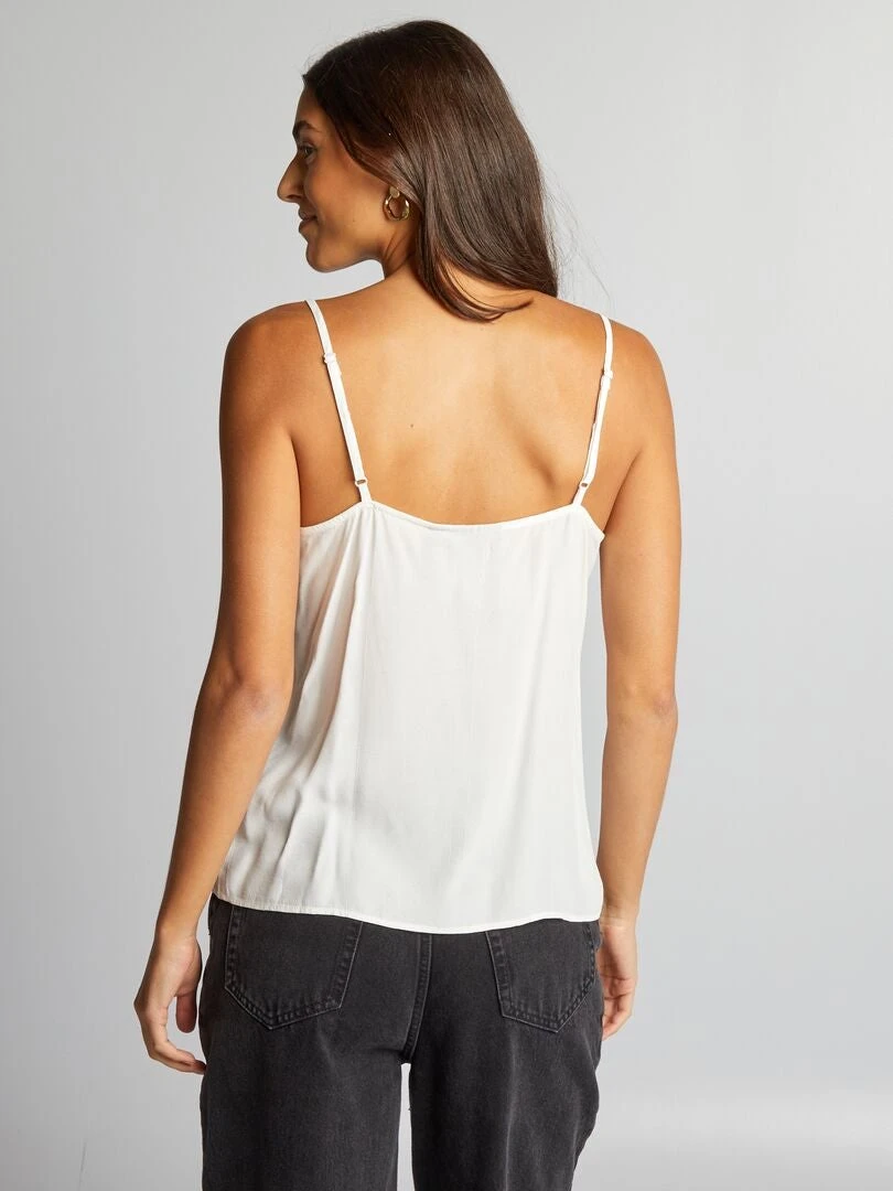 Un top vaporoso y elegante, perfecto con un short de talle alto o unos vaqueros.