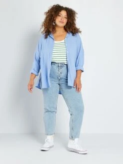 Vaquero Mom De Tiro Alto L34 – 5 Bolsillos – Azul