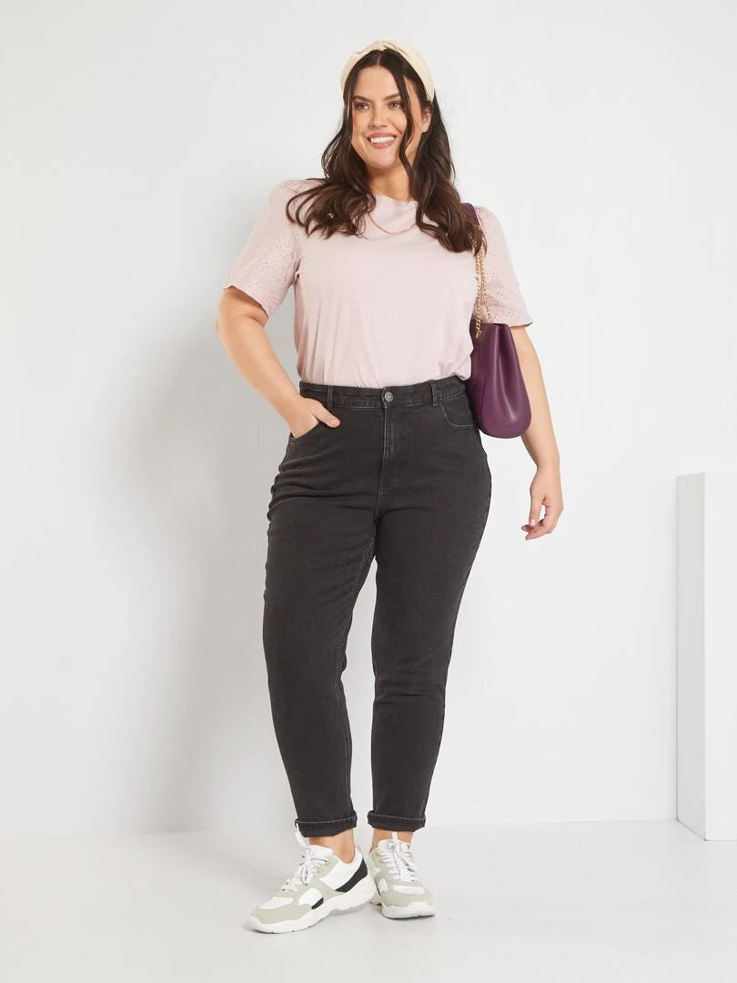 Pantalón mom con cintura ajustable y tejido de algodón eco-concepción. La practicidad de este vaquero mom te conquistará.