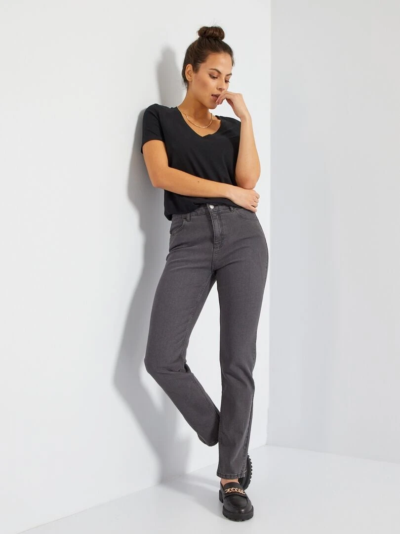 Vaquero Recto De Talle Alto – L30 – GRIS